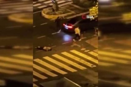 İstanbul Beylikdüzü’nde bir vatandaş ile iki şüpheli arasında henüz bilinmeyen bir nedenle kavga çıktı. İki şahıs, döverek bayılttıkları şahsı yerde yatarken yumruklamaya devam etti. O anlar kam...